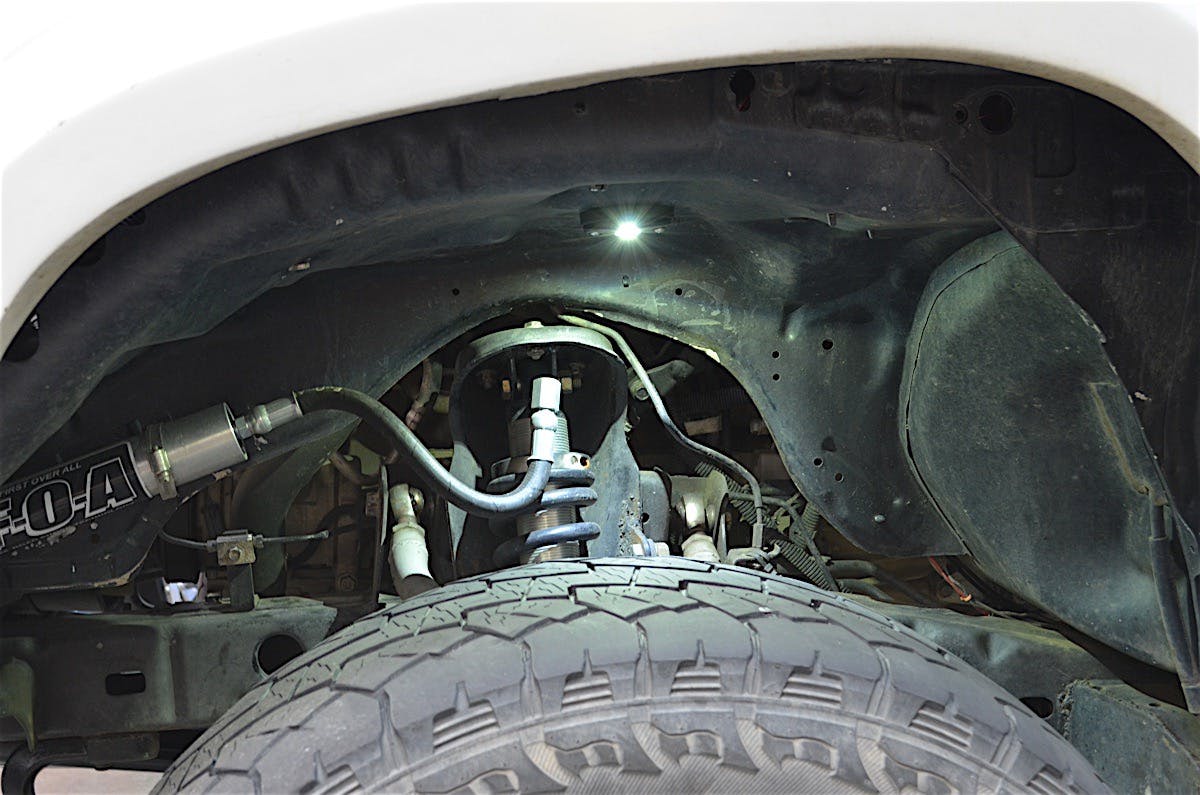 The rock light kit is self-explanatory, and with the included instructions, we knew exactly what steps to take to complete the task at hand. Starting in the rear of the truck, we installed the passenger rear light first and made our way around in a clockwise fashion.