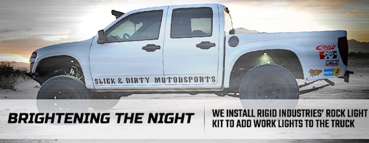 To get Project Storm Trooper, our 2005 GMC Canyon, ready for the desert and any worst-case scenarios, we turned to Rigid Industries and its A-Series Rock Light Kit (PN 40020) to provide light for our wheelwells. We opted to go with white as the light color since we would need to see what we would be doing at night.