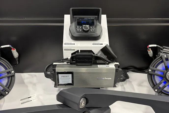 The low end comes from a 10-inch M2 subwoofer living in a custom enclosure up front. Typically, this is a ported design that gives the sub more punch in the mid-bass, but Rockford engineers in the ability to cap the port if your riding style involves deep water. In “sealed” mode, you don’t move as much air, but you keep the internals safer when the trail turns into a river.