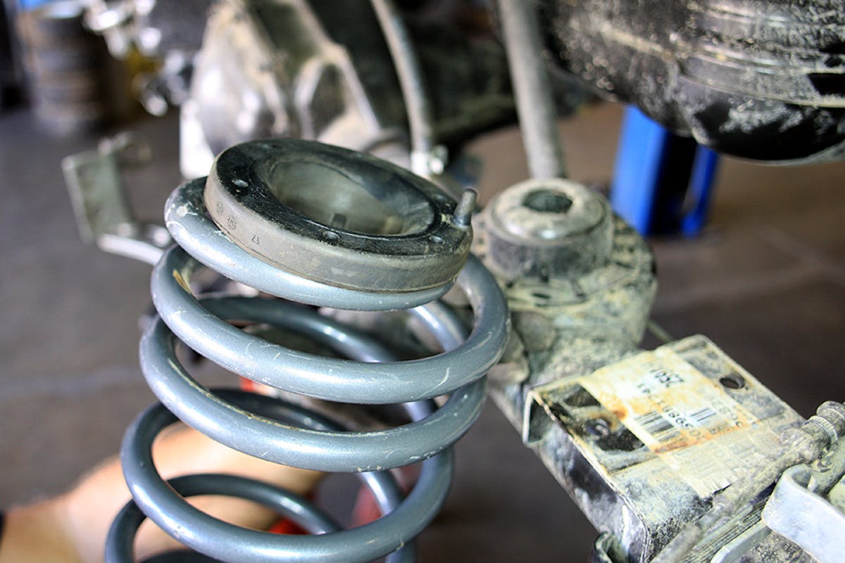 The rear track bar needs the supplied bracket attached to the frame. It’s also important to re-install the factory spring isolator pads to the new coil springs to reduce noise and vibration.