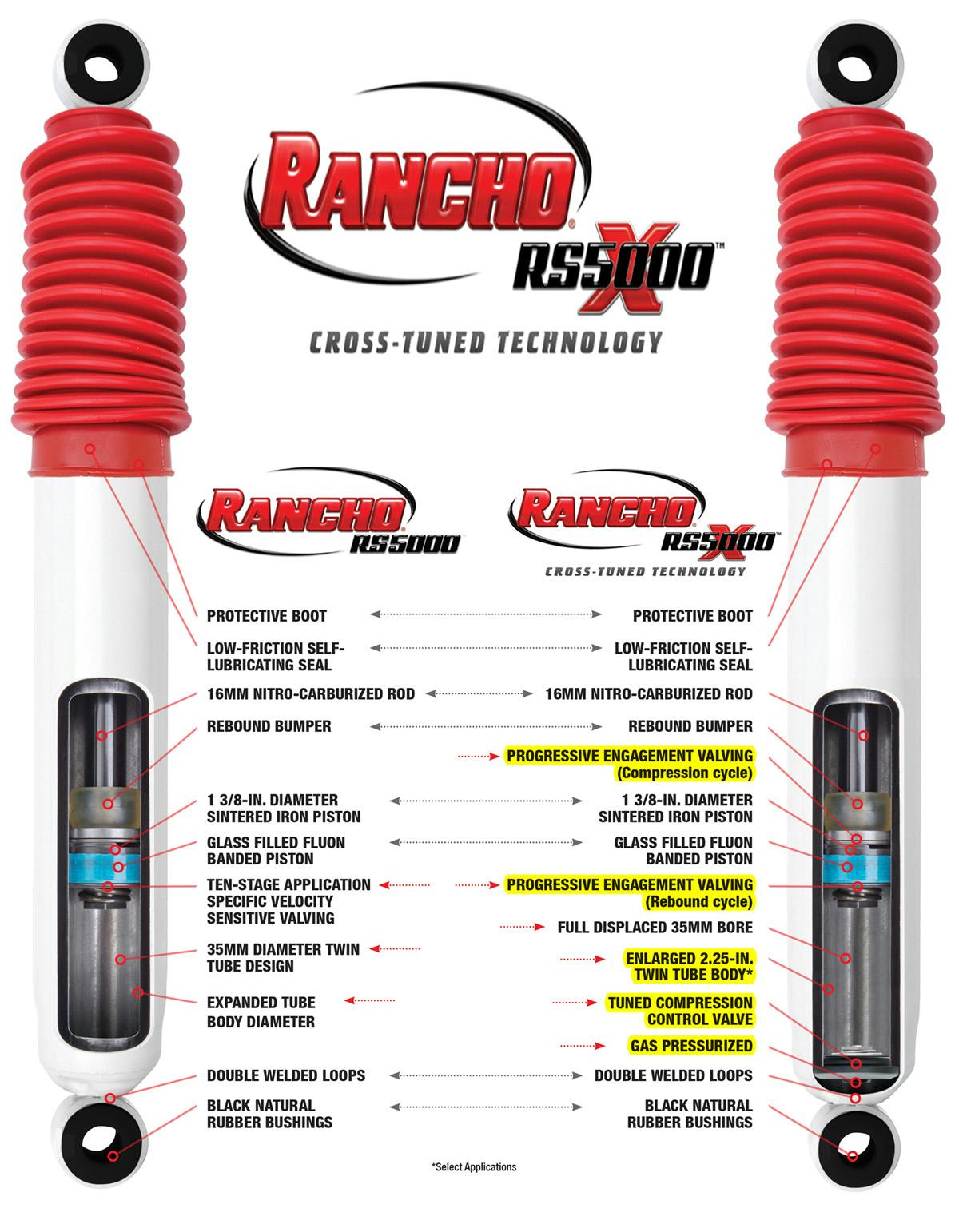 Changing the RS5000 to better suit the trucks and SUVs of today was what led to the development of the RS5000X, which rolled out in 2015. Thanks to the handy sheet below, you can see for yourself how the shock improves upon its predecessor.