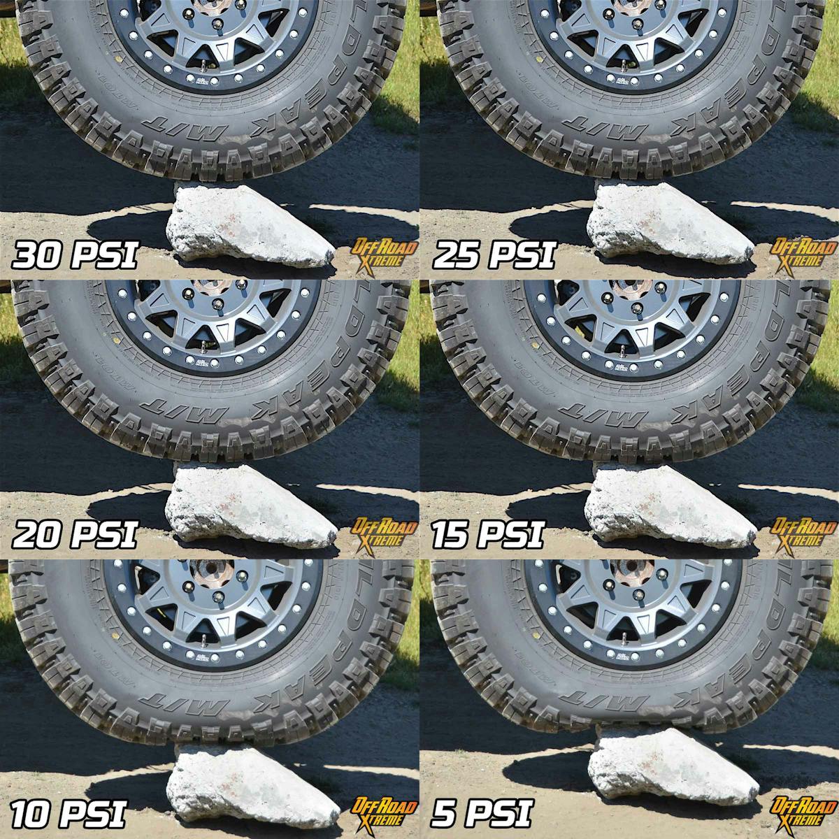 As with anything, practice makes perfect. The best part about airing down is there is no wrong pressure. Go out to a local trail and play around on an obstacle. Start at a particular pressure, attempt the obstacle, then go back and do it again at a lower pressure.