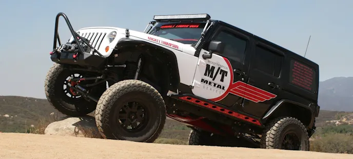 The 2007 Jeep is powered by a 3.8-liter V-6 engine with a five-speed automatic transmission. It also stands high on a BDS 6-1/2-inch tall, Long Arm Suspension System with Fox 2.0 shocks. The axles carry 5.16:1-ratio ring and pinions to help keep big meats like the 37s the Mikey Metal Jeep was running from bogging down the engine.