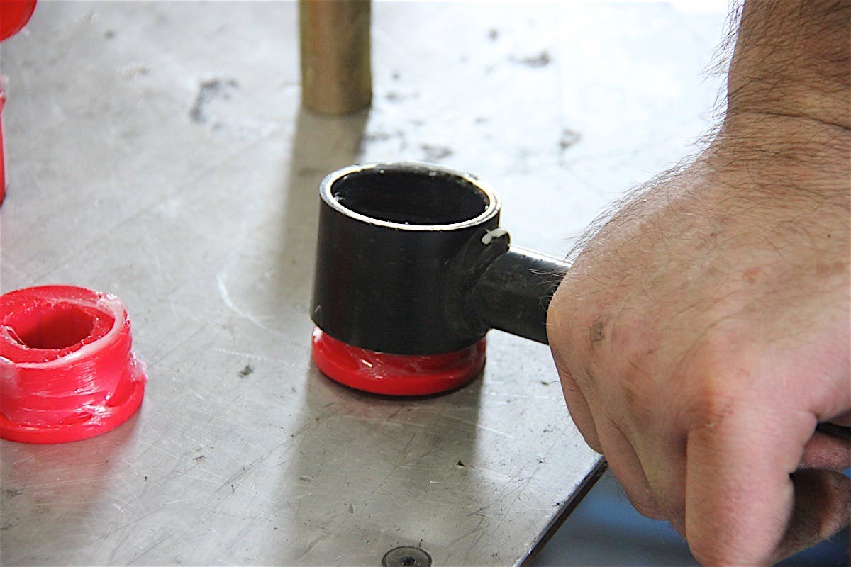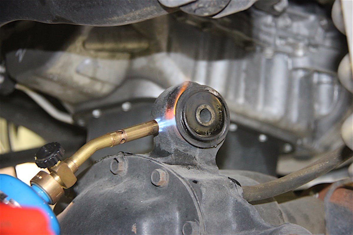 The only one that gave us any issue was the front left upper control arm, which had a bushing pressed into a mount on top of the differential. It took several minutes of applying dual MAPP gas torches to the mount to wear off the adhesive, but we eventually got the sucker out. After cleaning out the mount of any leftover rubber/adhesive residue, the Energy bushing went in easily.