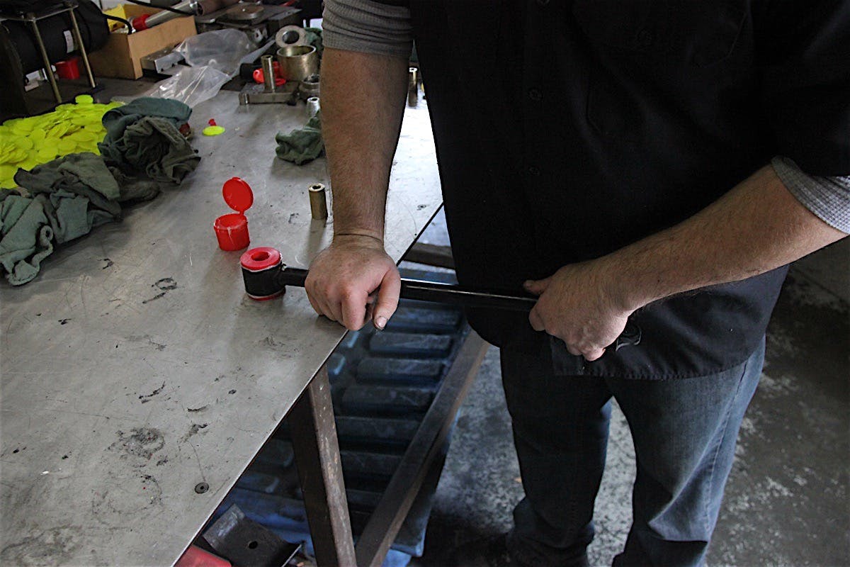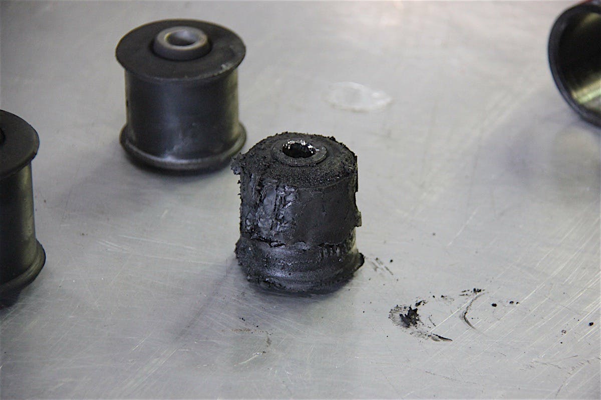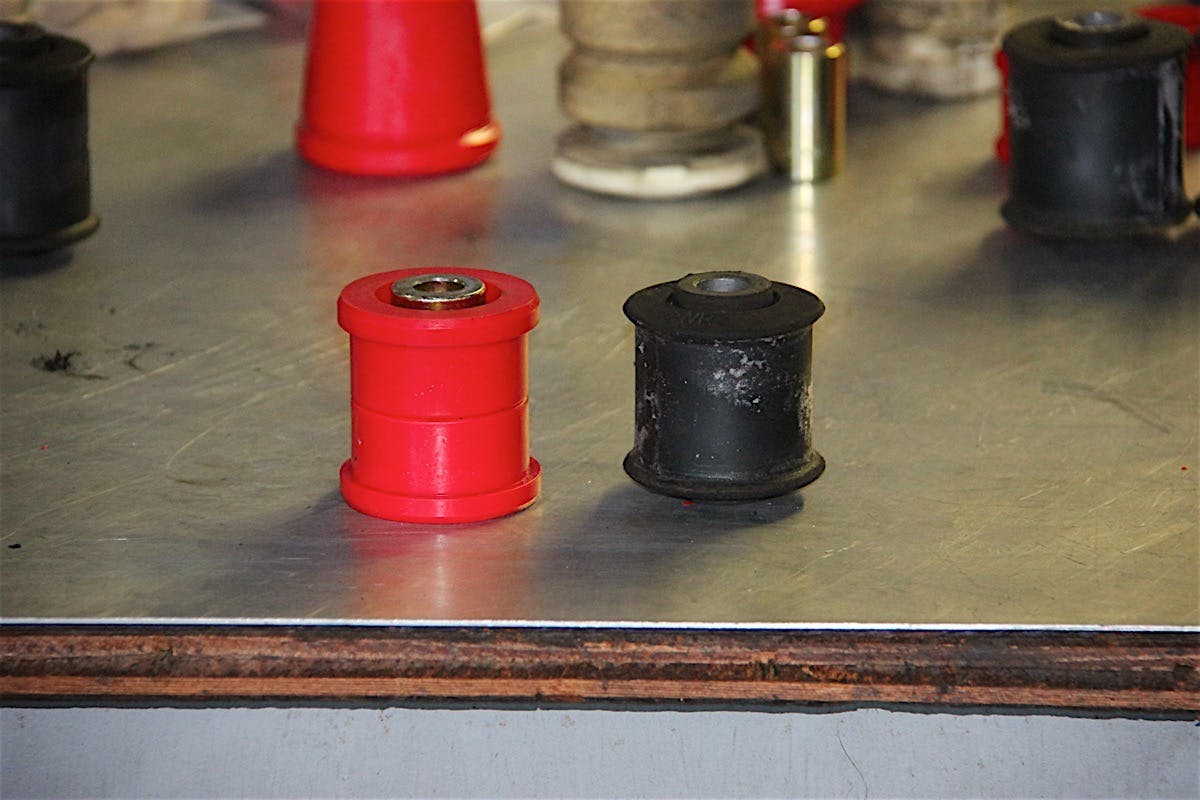 It was worth noting here the difference between the OE style bushing and Energy Suspension’s bushing. With both versions free and able to be picked up and inspected, we could appreciate the differences that made Energy’s version better.