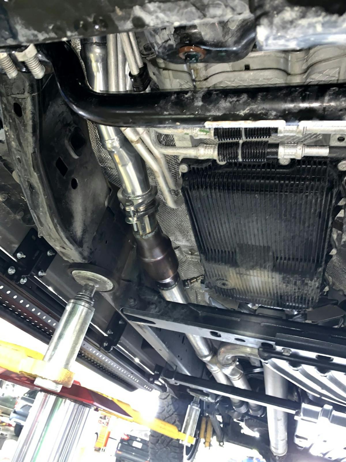 Installation o the Ram is straight forward. Put the truck on stands and get the tires out of the way. Most of the job can be done through the wheel wells of the truck with hand tools. Typically, the kit Fletcher installed is a direct bolt-on. In his case, however, he wanted to replace the rest of the stock exhaust with some upgrades.