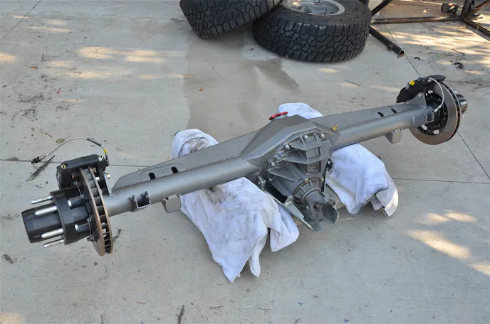 First, we needed to disassemble the axle. The semi-float axle shafts were removed as well as the third member. We threw away the semi-float axle shafts, but we had new plans for the third member.