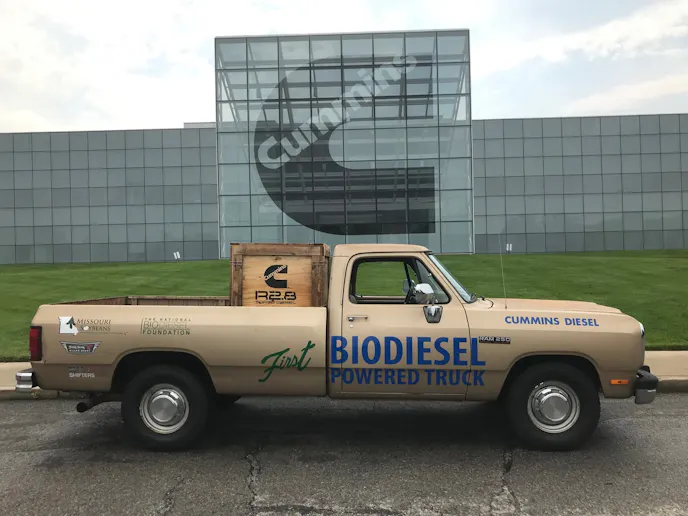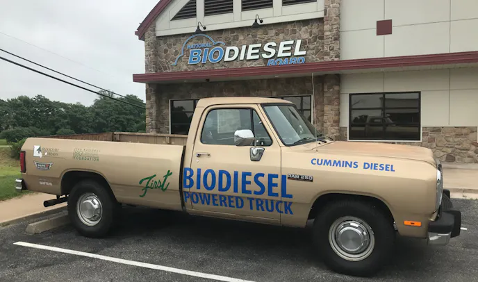 We caught up with Don Scott, Director of Sustainability for the National Biodiesel Board (NBB) who now maintains the very first test mule truck to run solely on biodiesel in the United States. “The 1991 Dodge Ram 250 was used by the University of Missouri to conduct the first biodiesel testing in the US.” Don explained. “The Missouri Soybean Merchandising Council (MSMC) funded the initial research.” Soybean oil had gone back and forth of being a byproduct of soybean meal for food and oil being the primary use for many industrial purposes.