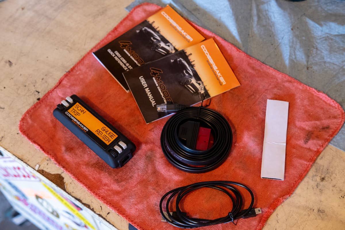 For example, the gauge cluster in our LS-swapped 1994 Toyota Land Cruiser gives us basic info about the 2006 6.0-liter LQ9-based engine that uses the OEM GM computer, but we wanted to know more about what’s up with our 4×4. This rig is not only our daily driver, but also our backcountry exploration vehicle. In fact, we recently piloted it over the Rubicon Trail. Thus, after reading about the Ultimate9 Codebreaker 4 Mode, we wanted to get it installed in our Cruiser so we could learn more about our rig. Everything we needed to install and use the unit was included. The box contained the Codebreaker 4 Mode unit, a user manual/start guide, OBD-II cable that powers the unit and allows communication with the vehicle, a USB cable for software updates, and Velcro mounting strips.