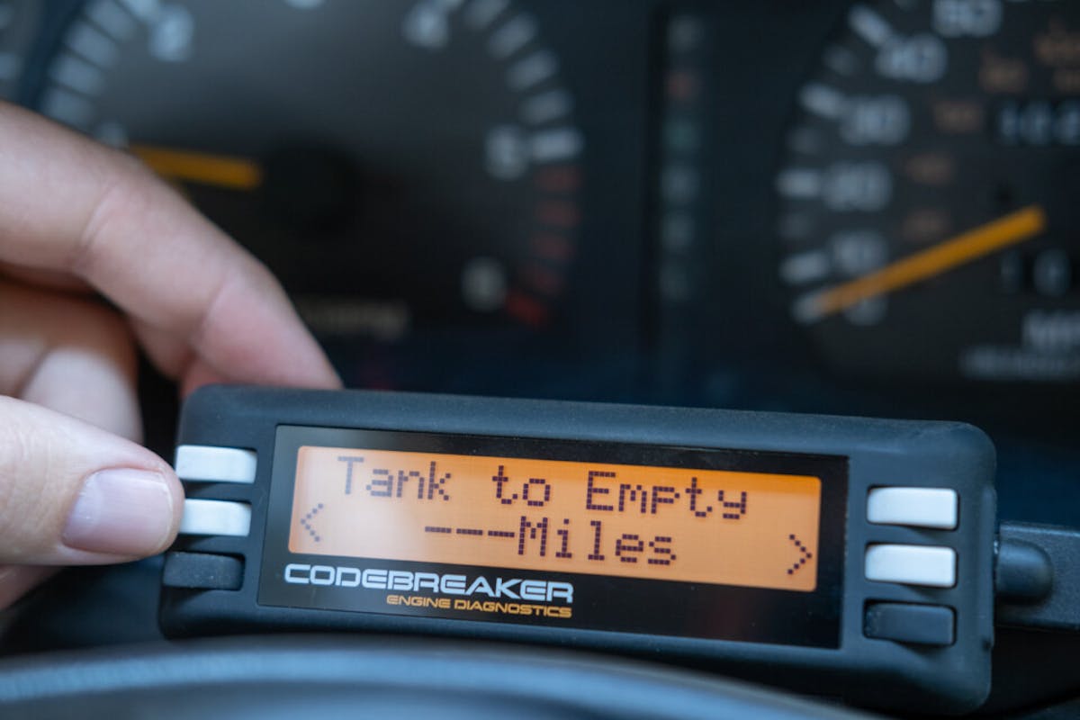 The Codebreaker 4 Mode’s trip computer is a full-featured mode that monitors a slew of useful information. It includes driving distance, driving time, maximum speed, and average speed. Additionally, it monitors trip fuel economy, fuel used, time to empty, distance to empty, and more.