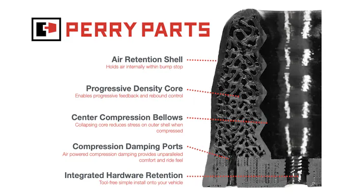 Perry Parts 3D-printed bumpstops are fascinating and innovative. The company says that they’re “designed for a bottomless, progressive ride feel, with unmatched compression damping and control for a smoother ride.” To accomplish these goals, the company utilizes cutting-edge technology and design. To get the full scope of the company’s processes we pitched five questions to Perry Parts owner Patrick Perry.