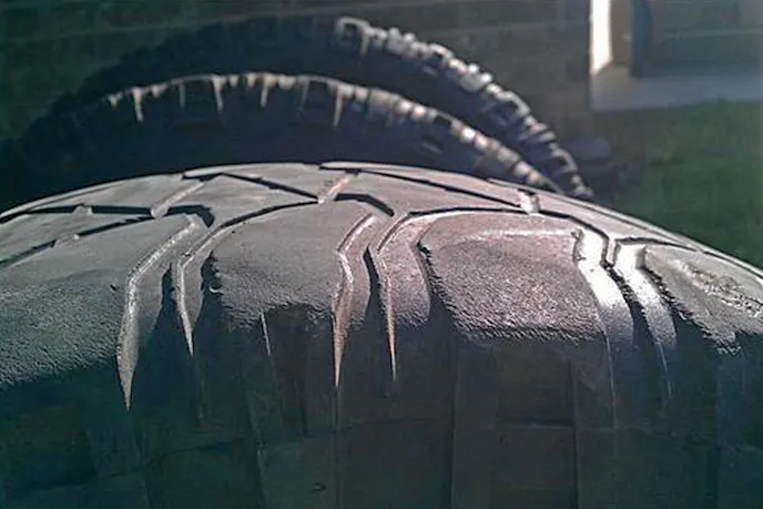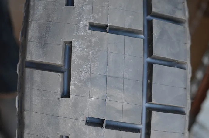 With the groover warmed up, we let it sit for a couple of hours to get it nice and warm, we took the blade to the tire and started cutting rubber. The blade went through the rubber like a hot knife through butter. We did not start with deep cuts, but worked our way up to matching the depth of a tread block the tire came with.