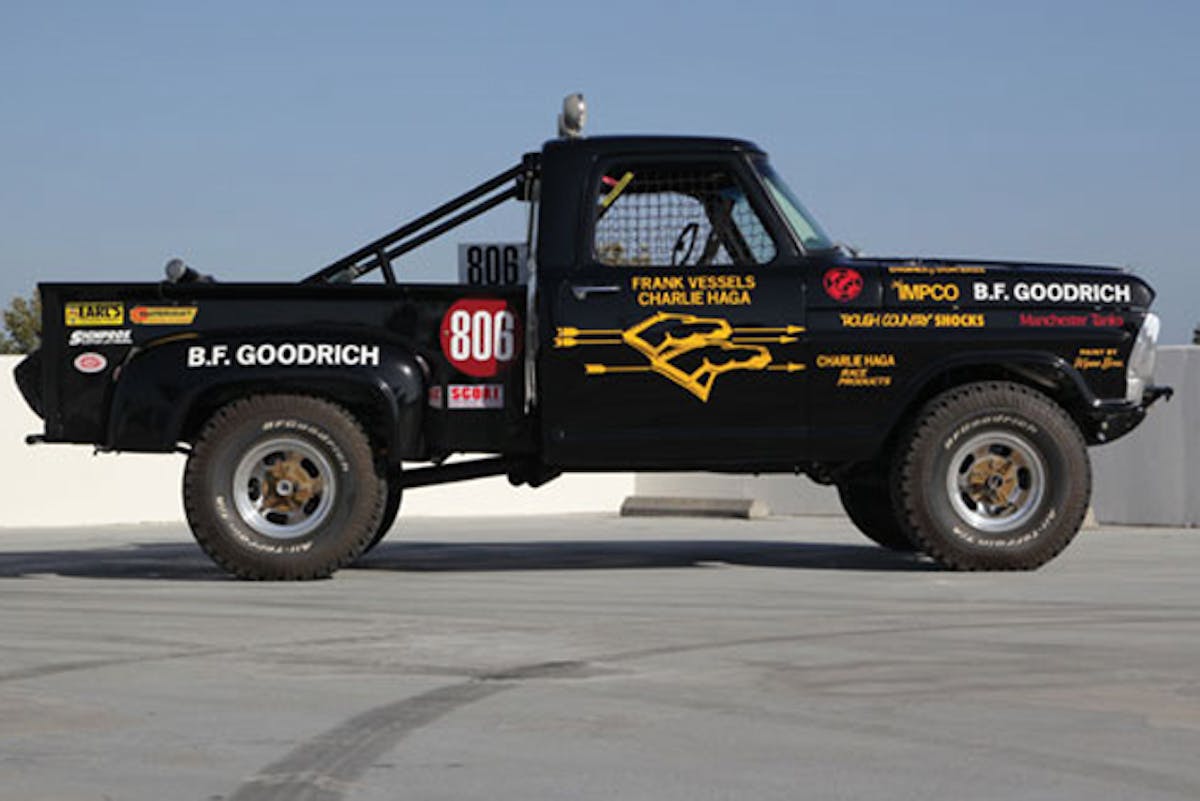 This Ford F-100 off-road race truck is in perfectly restored condition and has quite a history under its wheels. The truck was, depending on the source, originally a 1972 that was built into a full-bore race truck in 1976 by Charlie Haga. Vessels and the truck went on to take the Class 8 full-size truck win in the 1977 Baja 500 and Baja 1000.