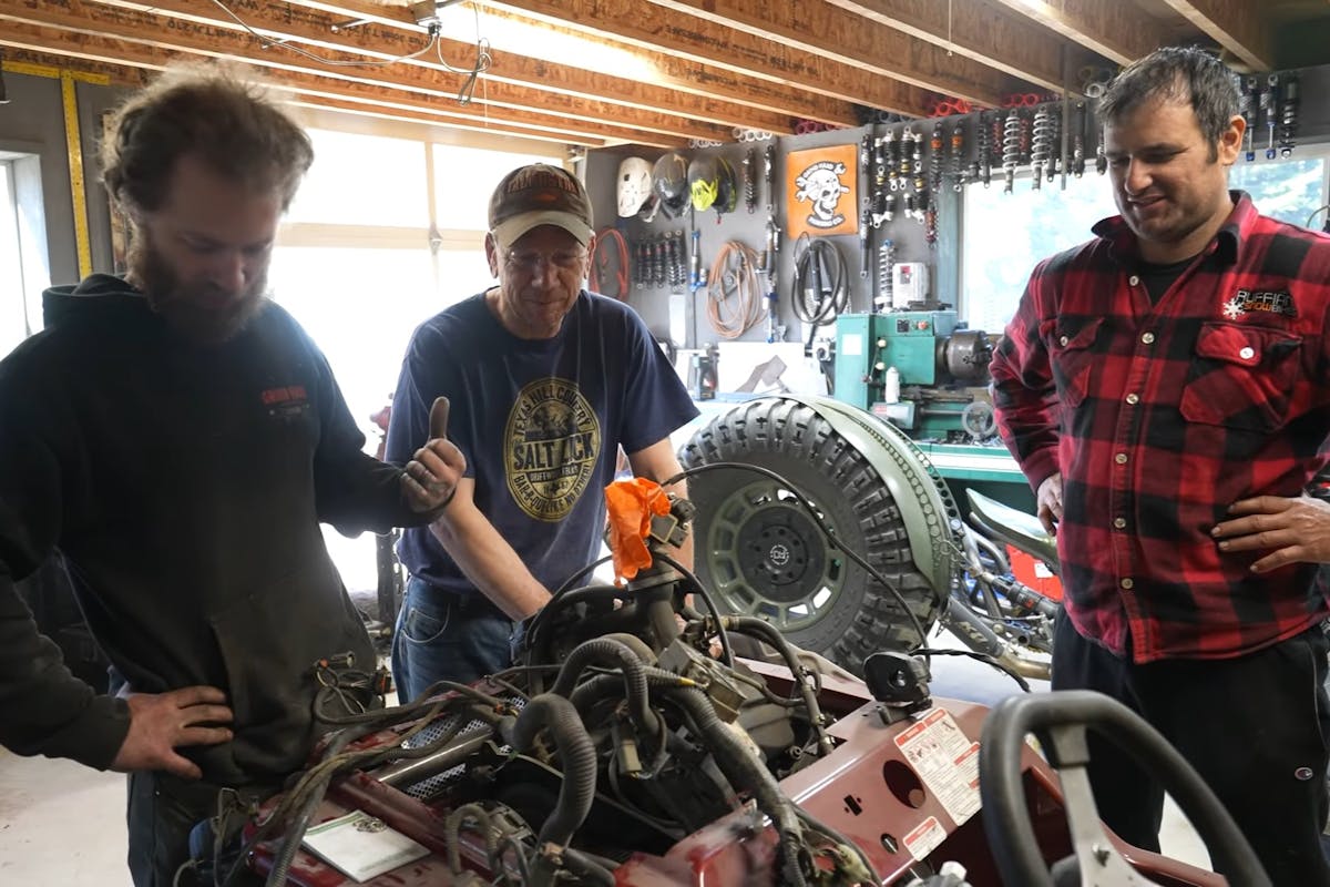 After overcoming wiring and fueling challenges, the engine finally roared to life. (With an initial high idle that needed addressing.) When the team checked, it was a binding throttle cable that caused the issue and required rerouting. With the engine running and steering functional (after fixing a leak and creating adapters), they took the mini-rock crawler for its first low-speed movements.