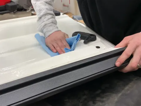 Once the top was off and separated into its sections, it was a 15-minute process that was started by wiping down and cleaning the interior side of the hardtop parts.